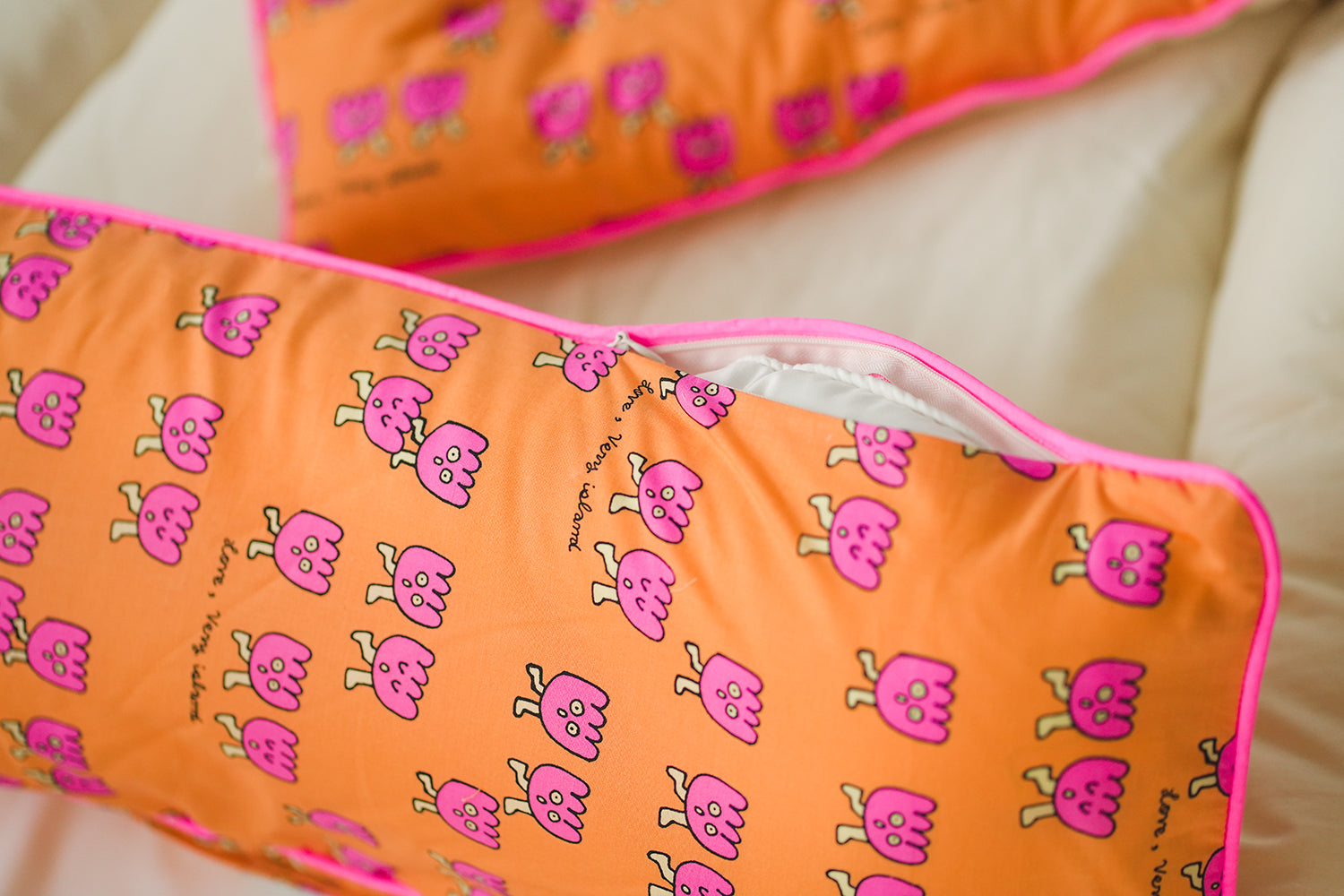 Pad+Pillow Cover - Made using two layers of cotton (8 oz + 8 oz, total 16 oz) placed between fabric, then hand-quilted lengthwise. It features a thick, firm cushion feel.