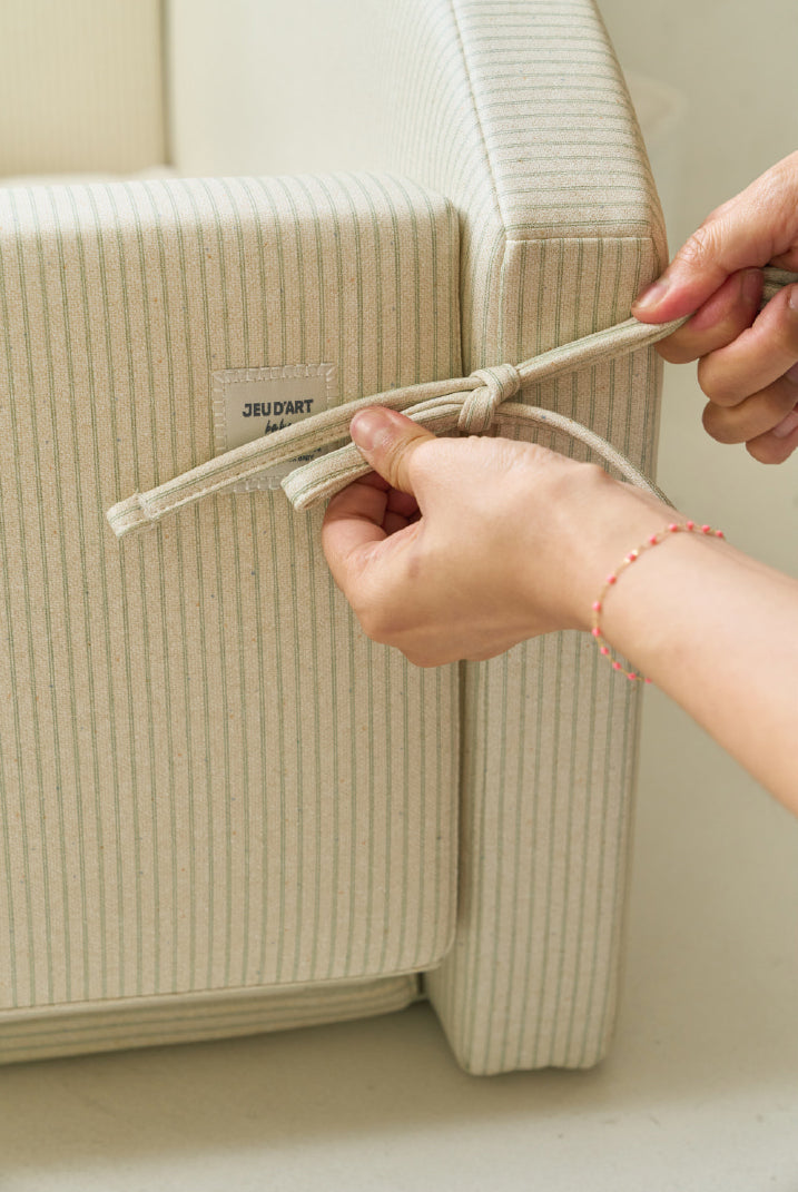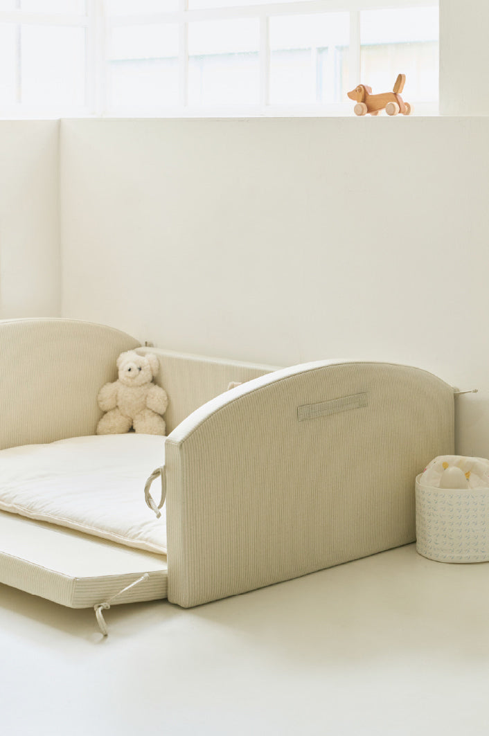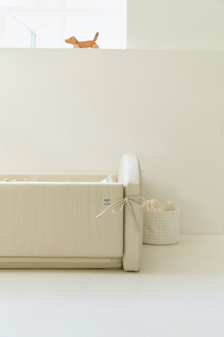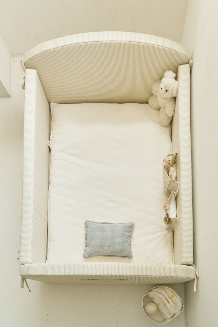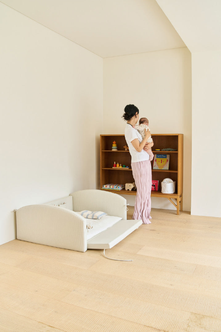 The JEU D'ART Baby line's nest bed, MOA, is an essential newborn portable bed designed to accompany everyday moments centered around your baby.